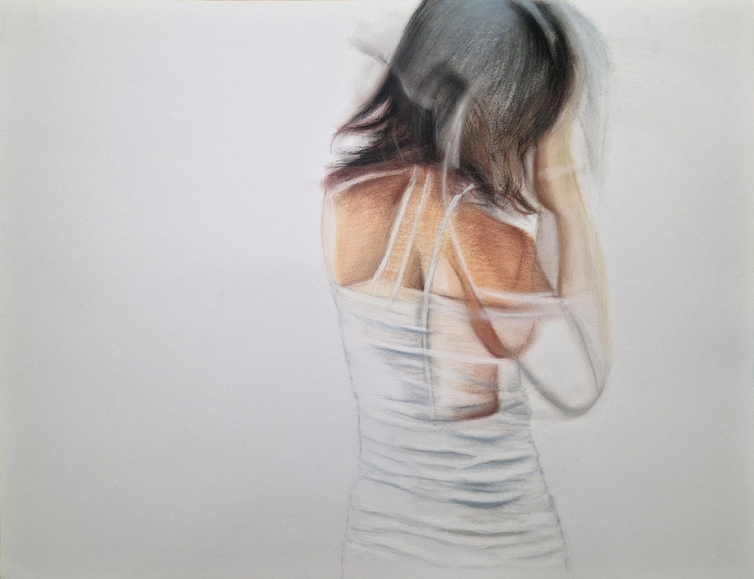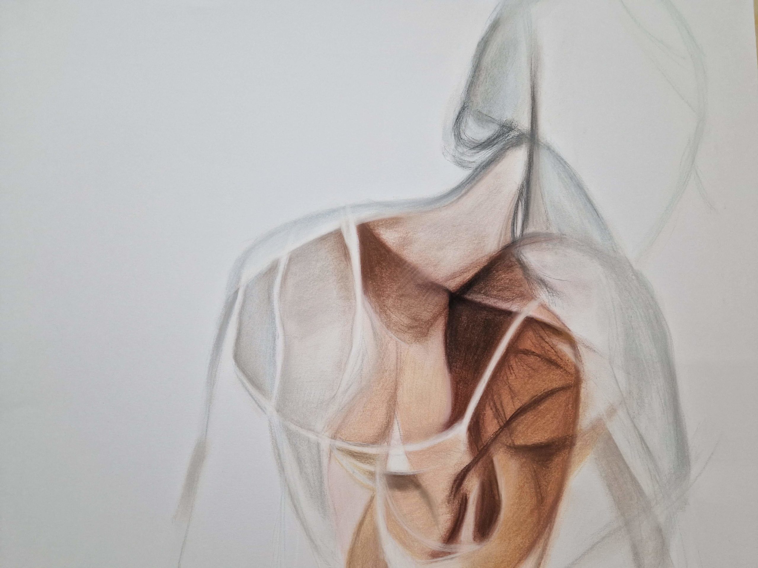 My drawings explore the subtle interplay between intimacy and movement, capturing the essence of fleeting, deeply personal moments. Through pencil on paper, I trace the quiet, often invisible shifts that occur within our internal landscapes. Paper, with its inherent fragility, becomes a metaphor for impermanence - while movement reflects the fluid, ever-evolving nature of perception and memory.